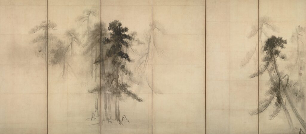 この日本独自の美意識が結実したのが、安土桃山時代に活躍した長谷川等伯の『松林図屏風』(図版3)です。